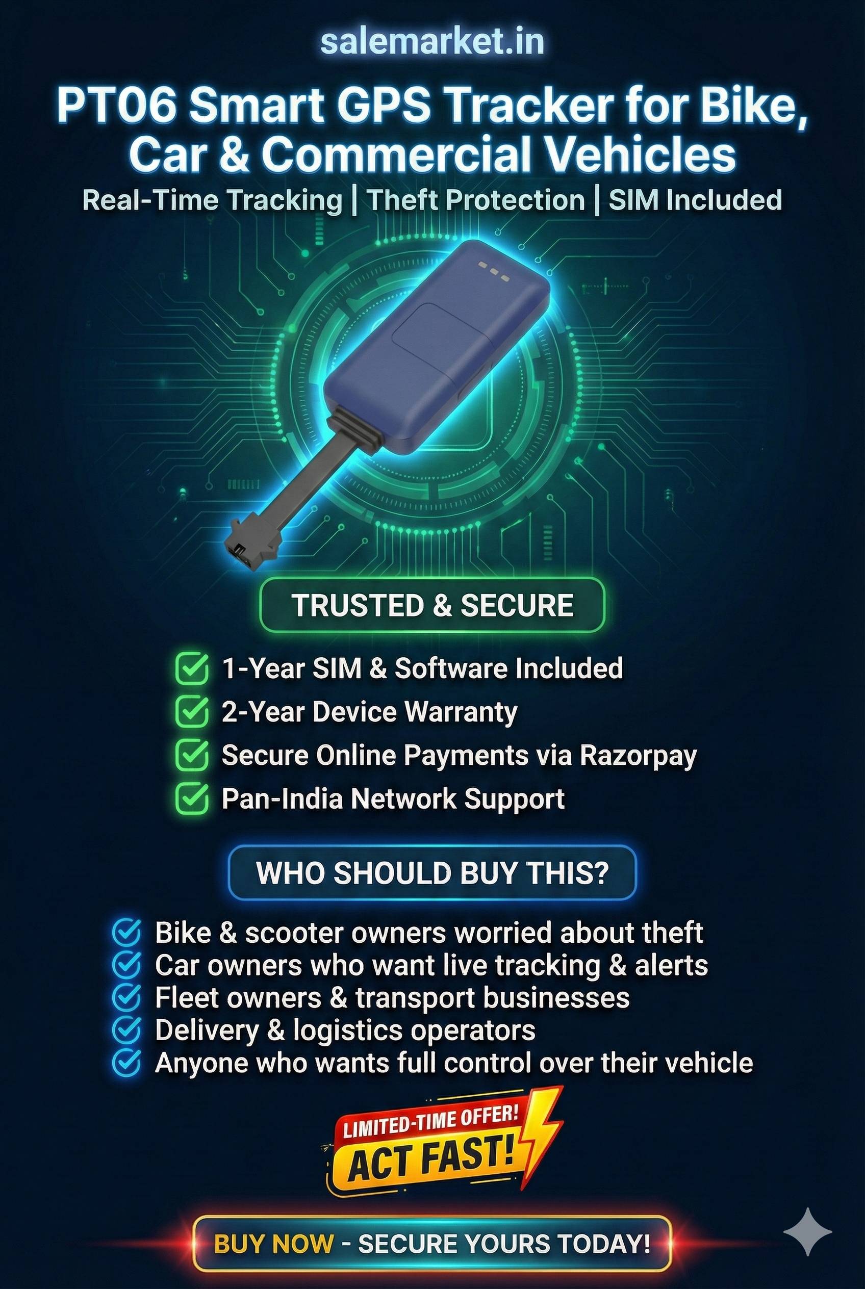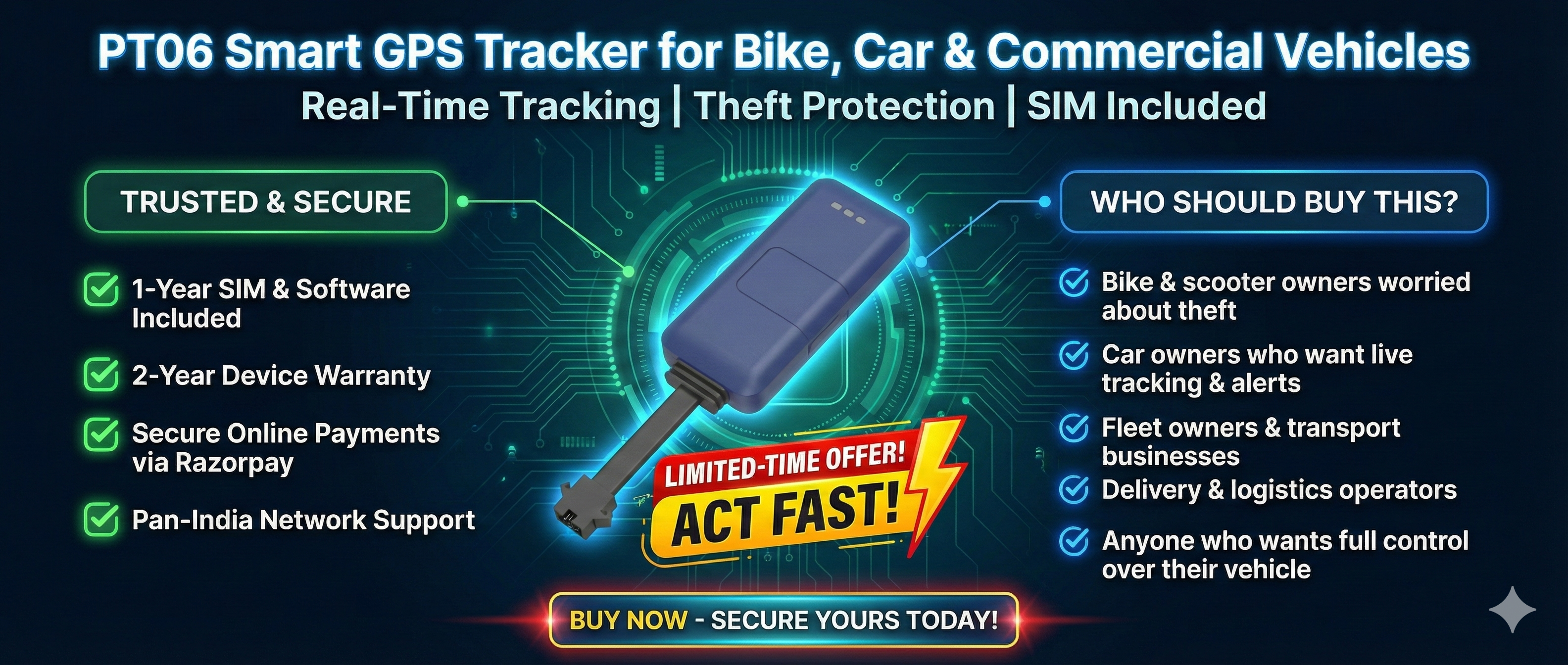 PT06 Smart GPS Tracker for Bike, Car & Commercial Vehicles Real-Time Tracking | Theft Protection | SIM Included